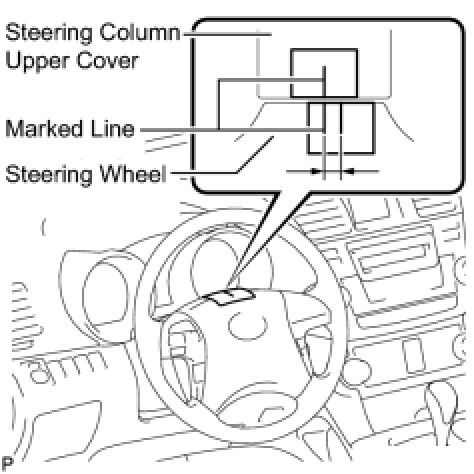(1) Apply masking tape on the top center of the steering wheel and steering column upper cover.