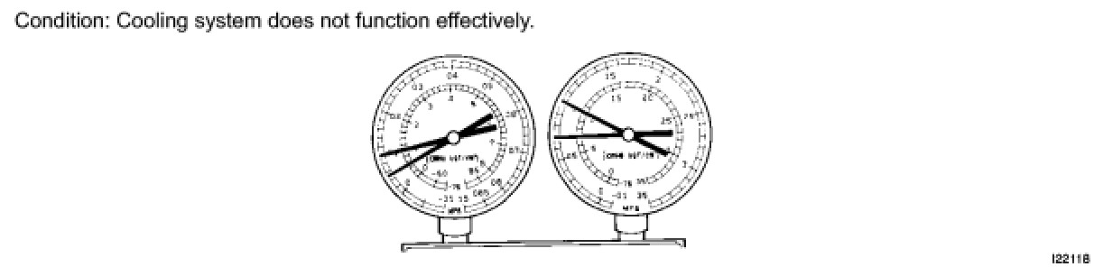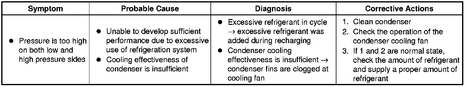 (6) Refrigerant is overcharged or cooling effectiveness of condenser is insufficient.