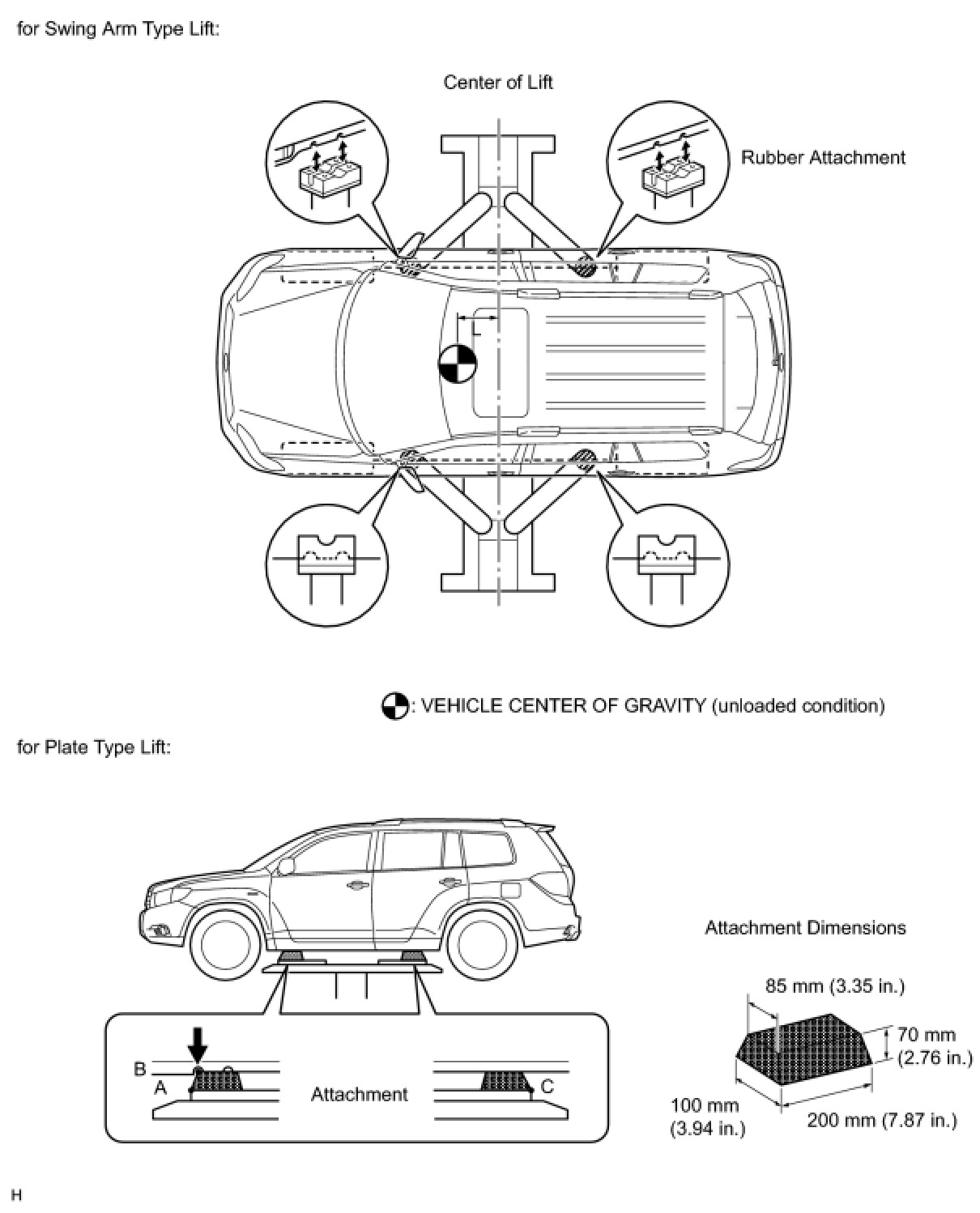(c) Set in the vehicle so as to make its center of gravity as close as possible to the center of the lift.