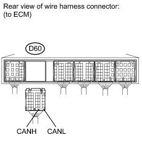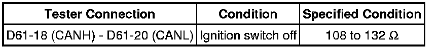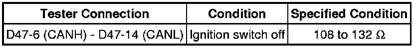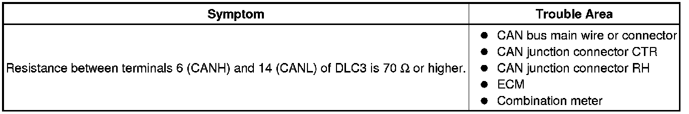 There may be an open circuit in the CAN main wire and/or the DLC3 branch wire when the resistance between terminals 6 (CANH) and 14 (CANL) of the DLC3 is 70 Ohms or higher.