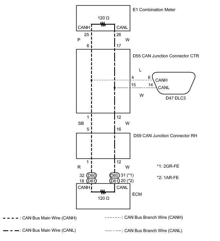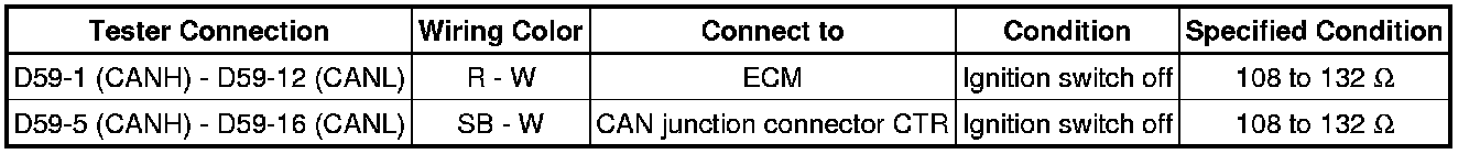* Turn the ignition switch off before measuring the resistances of the CAN main wire and the CAN branch wire.