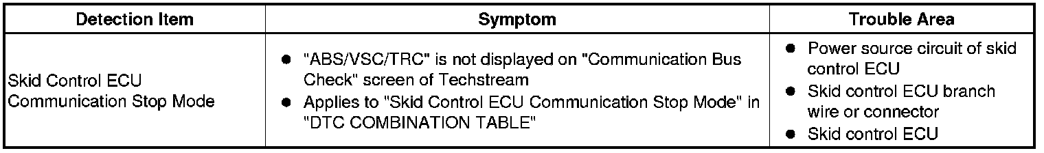 CAN COMMUNICATION: CAN COMMUNICATION SYSTEM: Skid Control ECU Communication Stop Mode