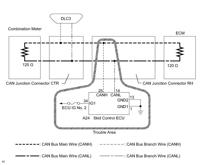 1. CHECK CAN BUS WIRE FOR DISCONNECTION (SKID CONTROL ECU BRANCH WIRE)