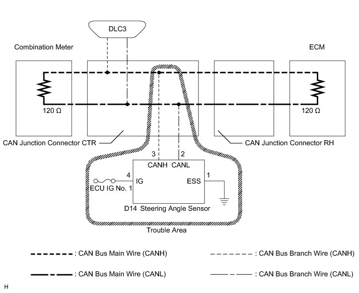 1. CHECK CAN BUS LINE FOR DISCONNECTION (STEERING ANGLE SENSOR BRANCH WIRE)