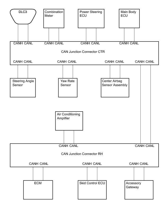 (c) The connection diagram of the components which are connected to the CAN junction connector.