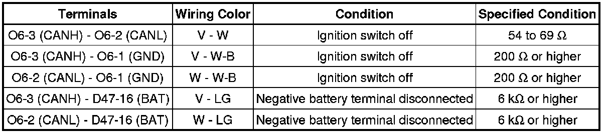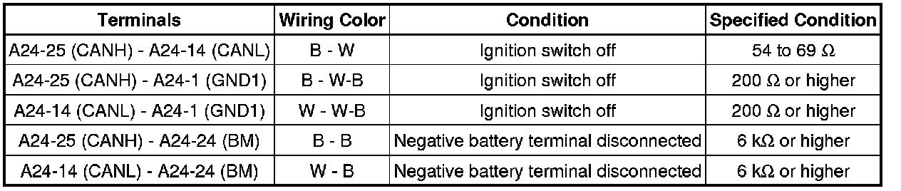 * Turn the ignition switch off before measuring the resistances of CAN bus main wires and CAN bus branch wires.