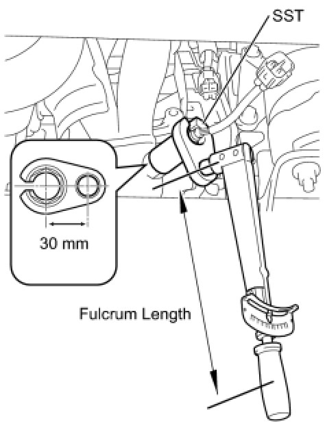 * The "with SST" torque value is effective when using a torque wrench with a fulcrum length of 300 mm (11.81 in.) Service Precautions.