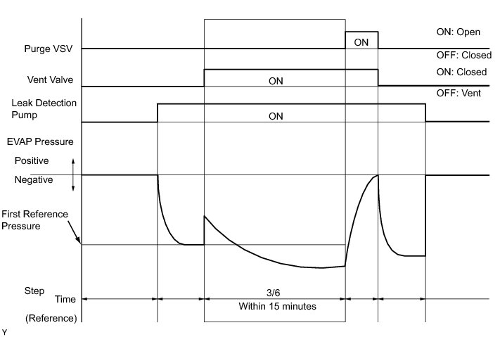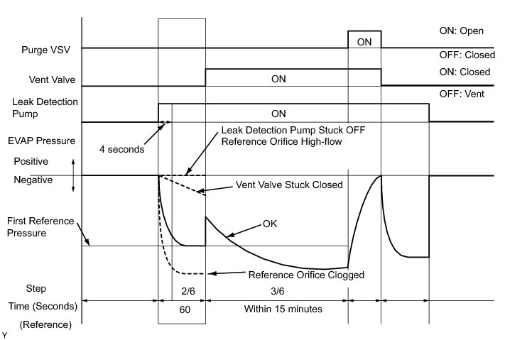 (b) Compare the EVAP pressure in step 3/6 and the second reference pressure (step 5/6).