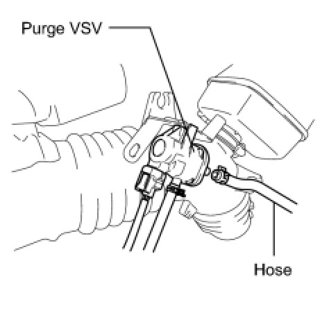 (c) Disconnect the hose (connected to the canister) from the purge VSV.