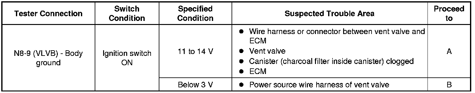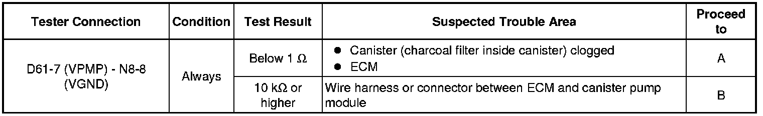 B -- INSPECT CANISTER PUMP MODULE (POWER SOURCE FOR VENT VALVE)