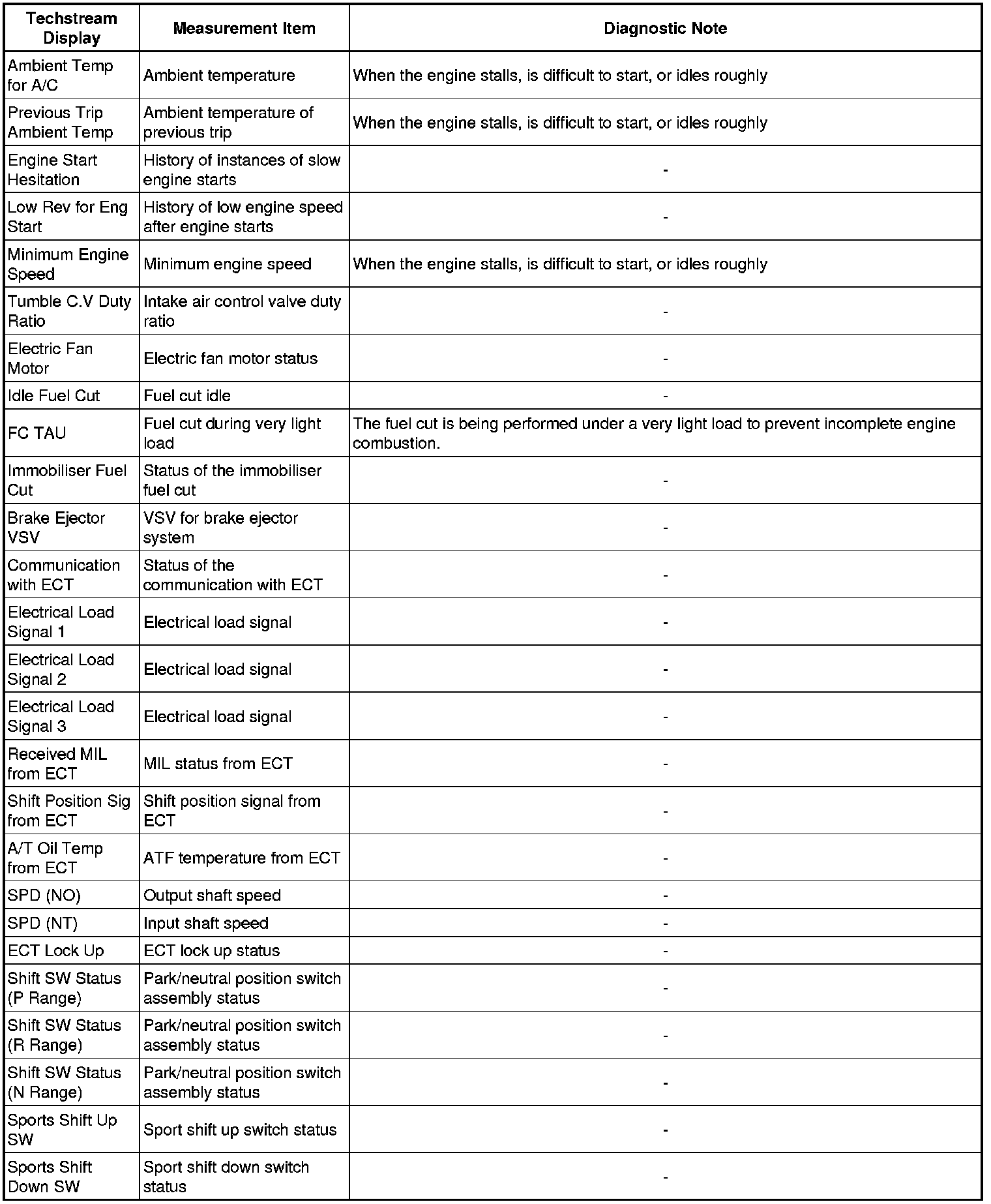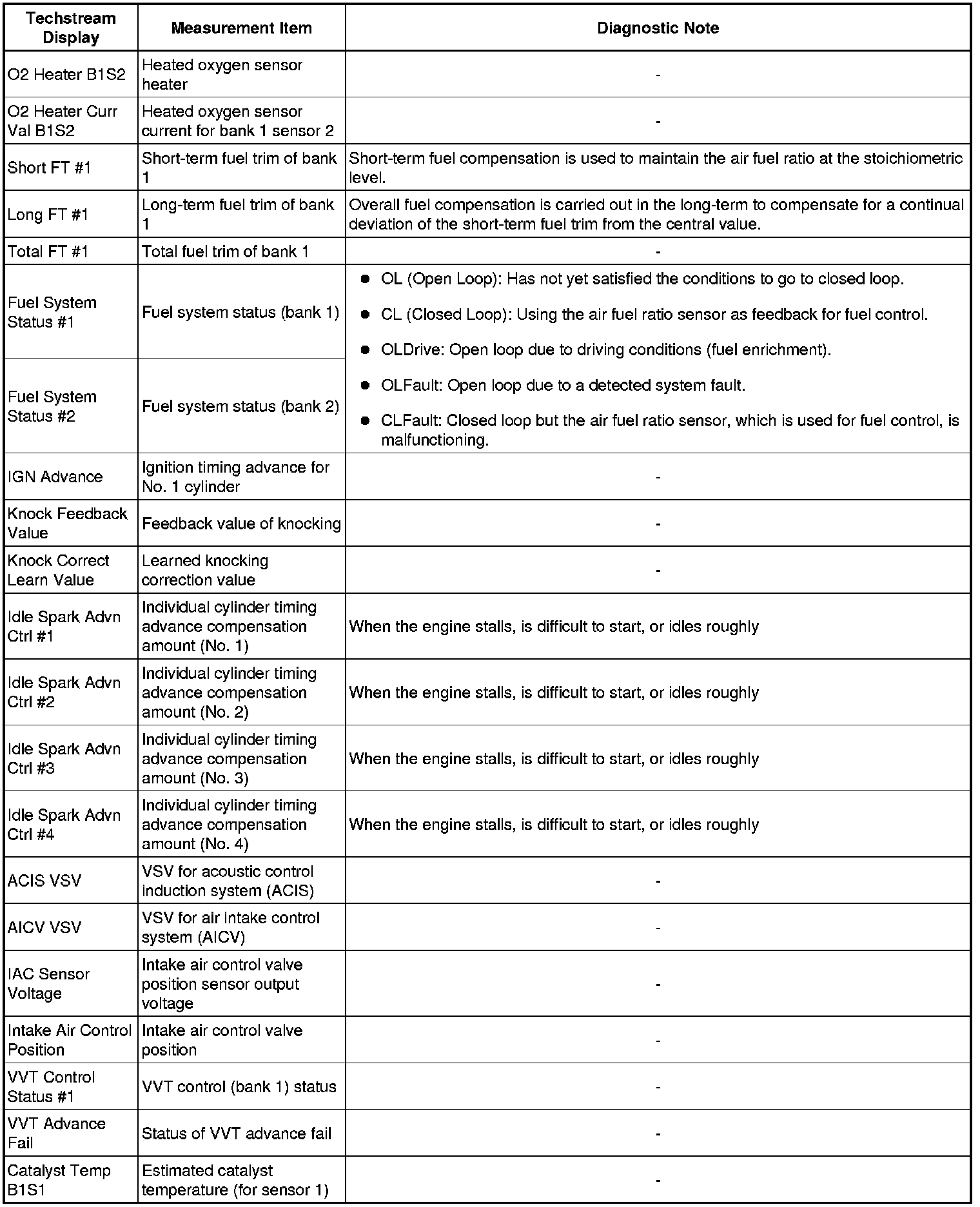 * The ECM records vehicle and driving condition information as freeze frame data the moment a DTC is stored. When troubleshooting, freeze frame data can be helpful in determining whether the vehicle was moving or stationary, whether the engine was warmed up or not, whether the air fuel ratio was lean or rich, as well as other data recorded at the time of a malfunction.