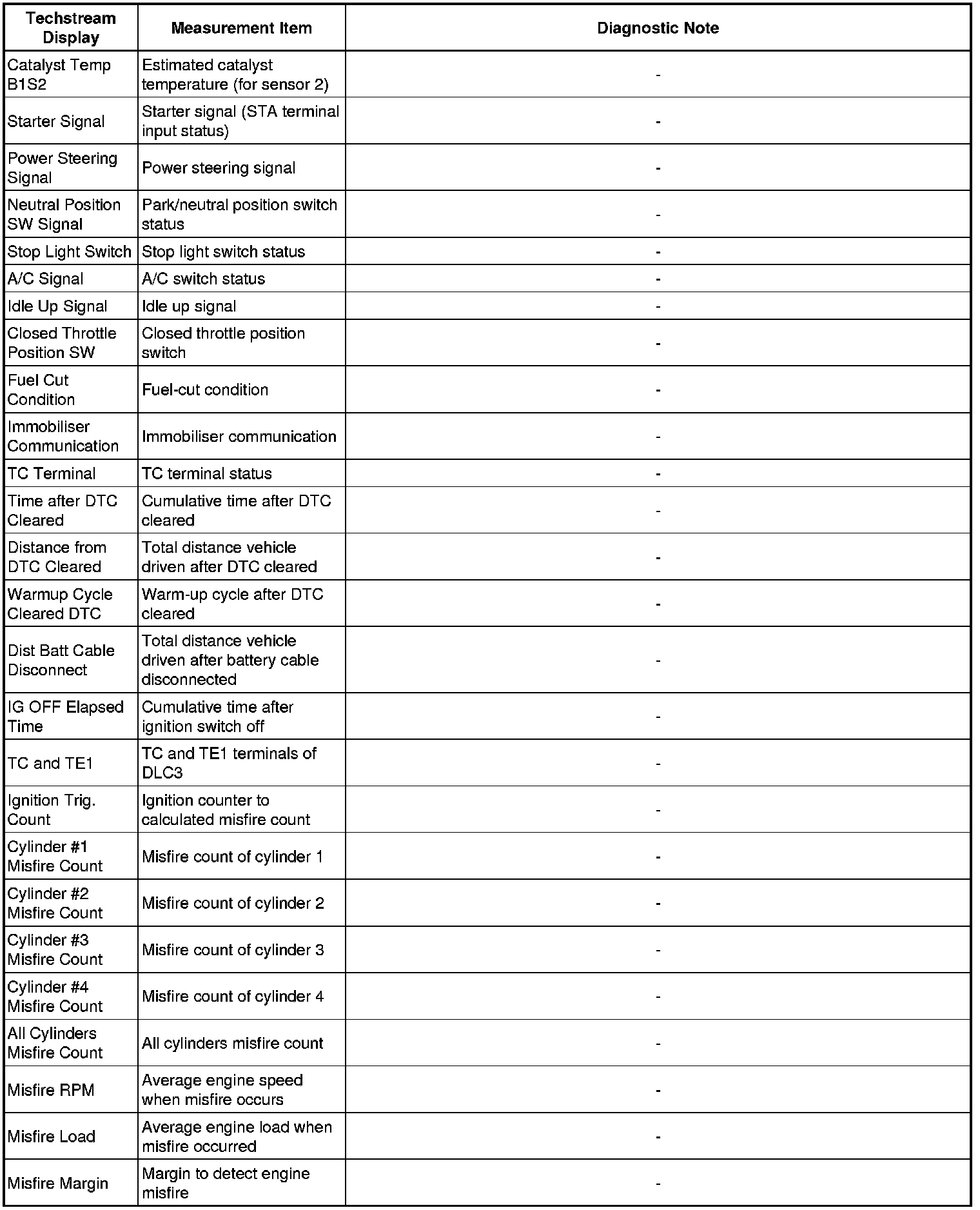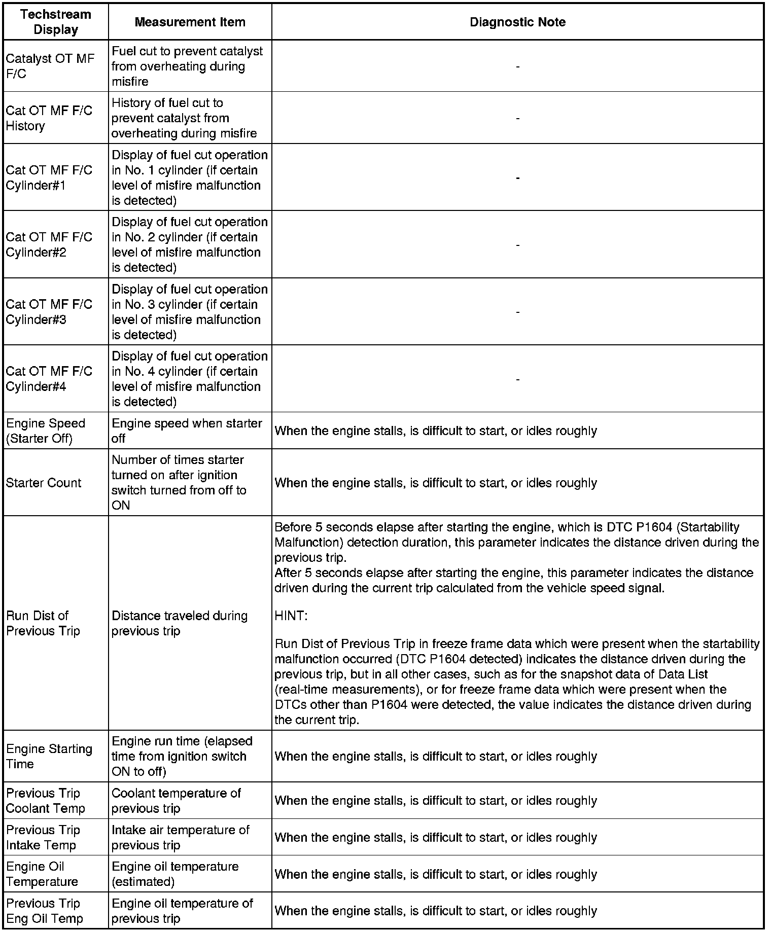 * The ECM records engine conditions in the form of freeze frame data every 0.5 seconds. Using the Techstream, 5 separate sets of freeze frame data, including the data values at the time when the DTC is stored, can be checked.