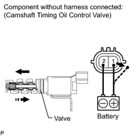 (b) Connect a battery positive (+) lead to terminal 1 and negative (-) lead to terminal 2, and check the movement of the valve.