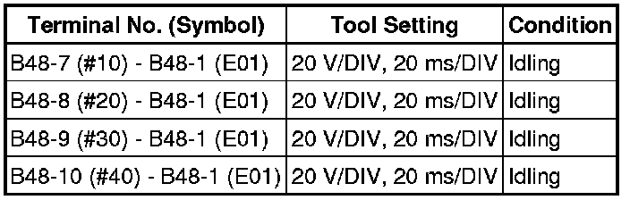 If the waveform is not similar to the illustration, check the waveform again after idling for 10 minutes or more.