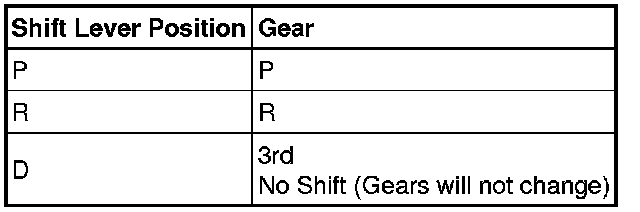 (b) Drive with the TCM connector disconnected. Move the shift lever to each position to check whether the gear changes as shown in the table below.