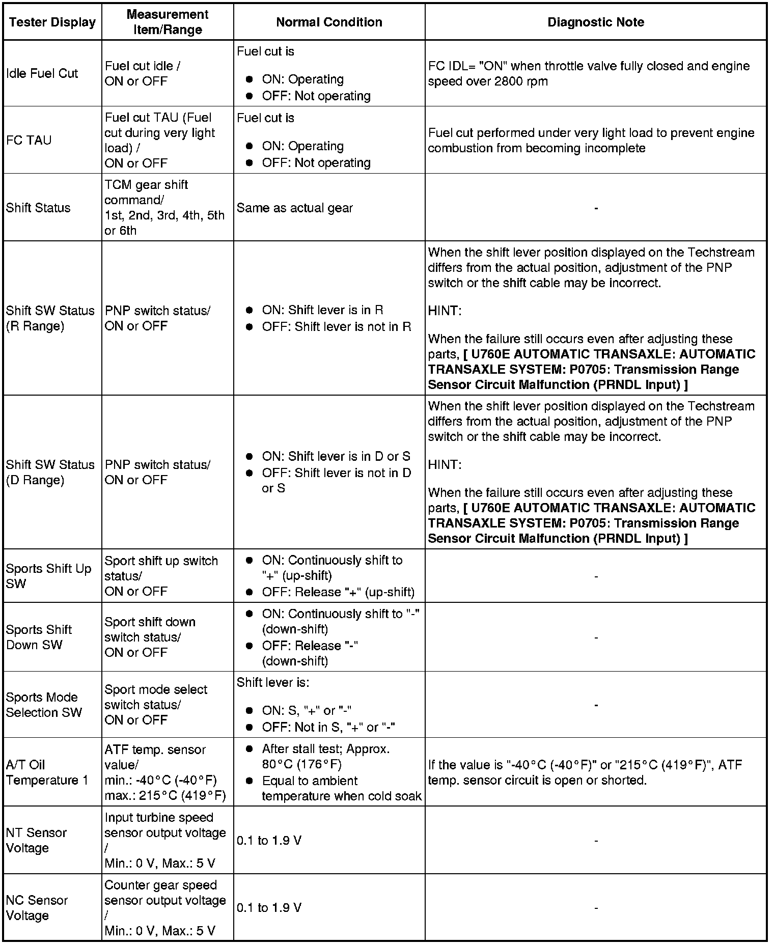 U760E AUTOMATIC TRANSAXLE: AUTOMATIC TRANSAXLE SYSTEM: DATA LIST / ACTIVE TEST