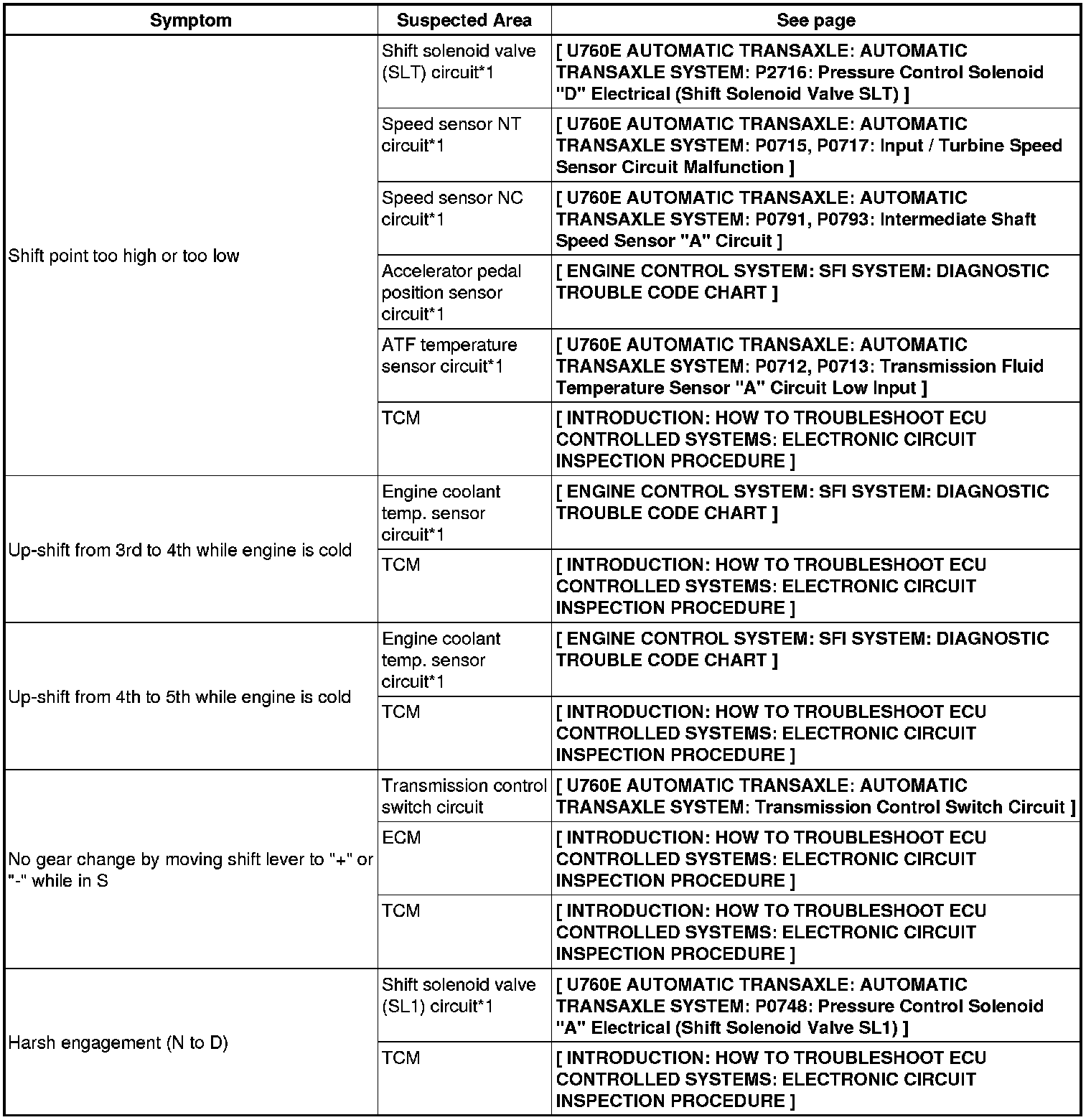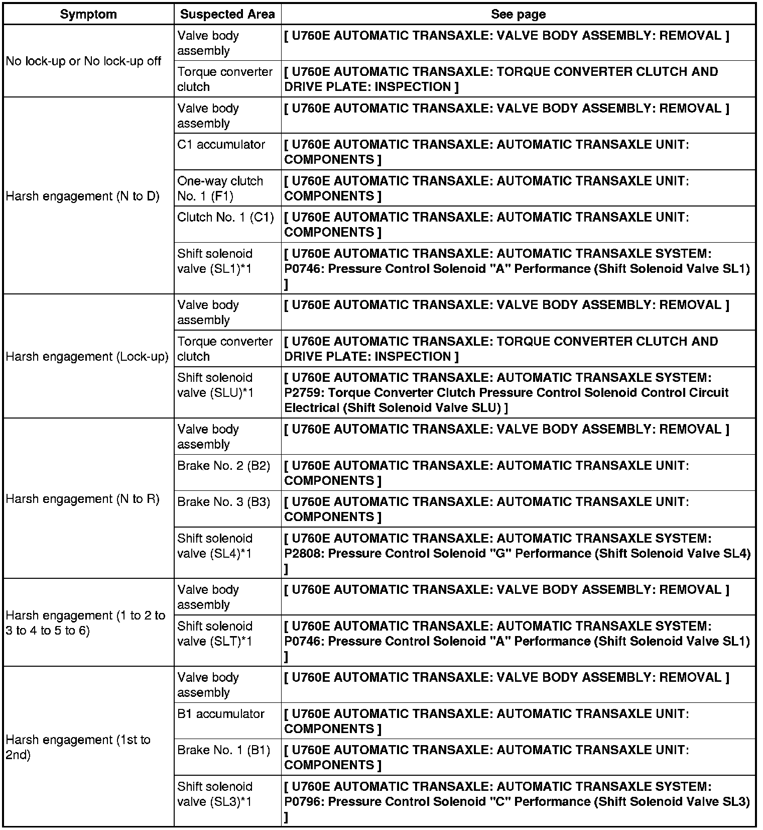 U760E AUTOMATIC TRANSAXLE: AUTOMATIC TRANSAXLE SYSTEM: PROBLEM SYMPTOMS TABLE