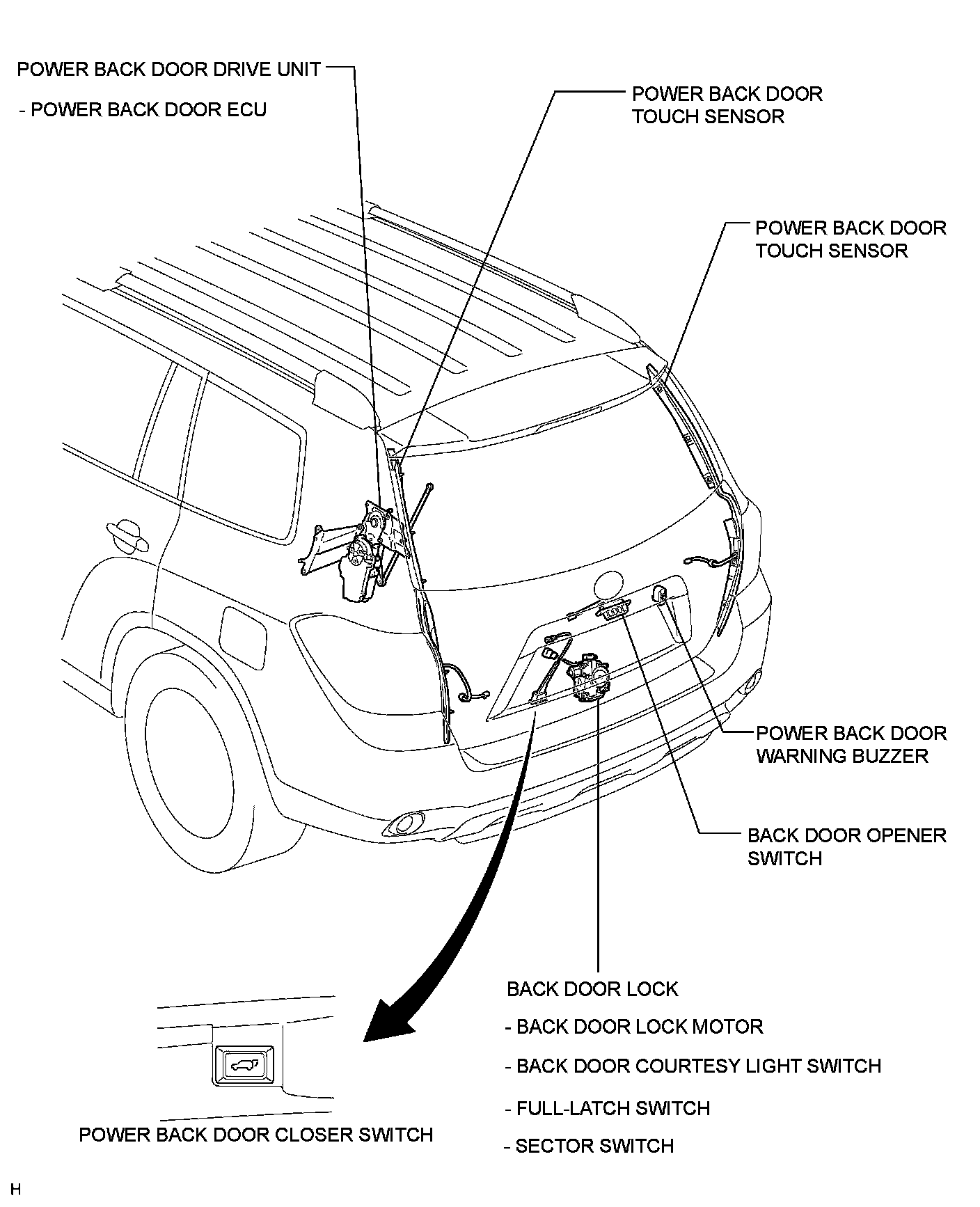 ENGINE HOOD / DOOR: POWER BACK DOOR SYSTEM: PARTS LOCATION
