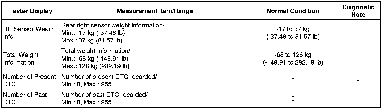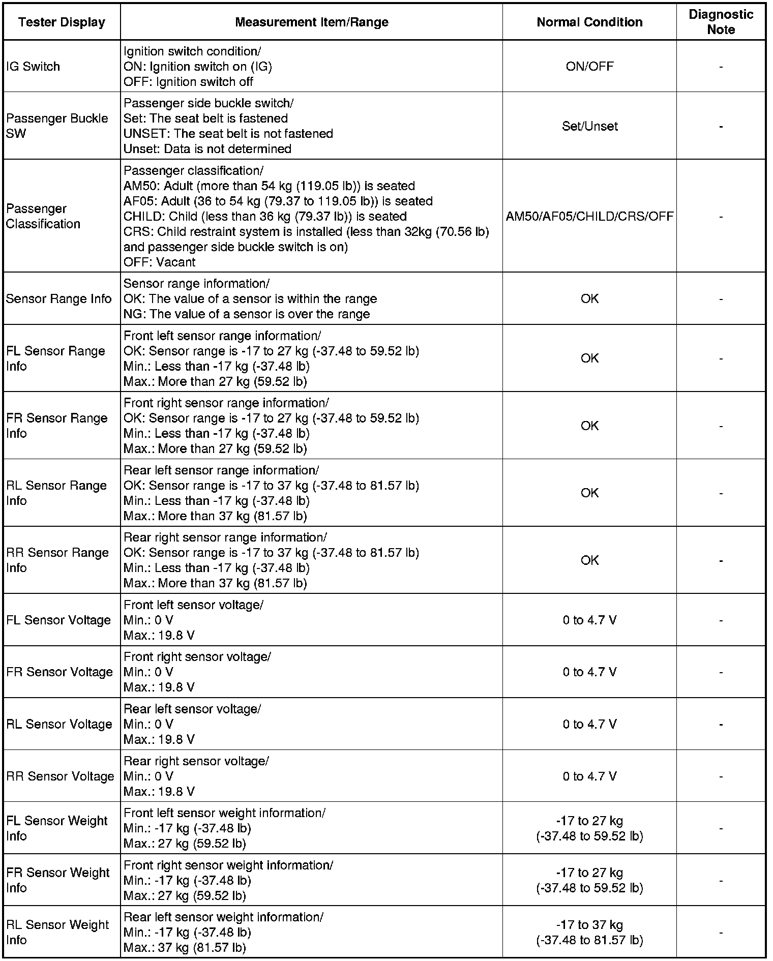1. DATA LIST FOR OCCUPANT CLASSIFICATION ECU