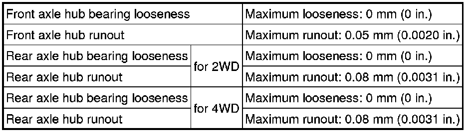 SERVICE SPECIFICATIONS: AXLE: SERVICE DATA