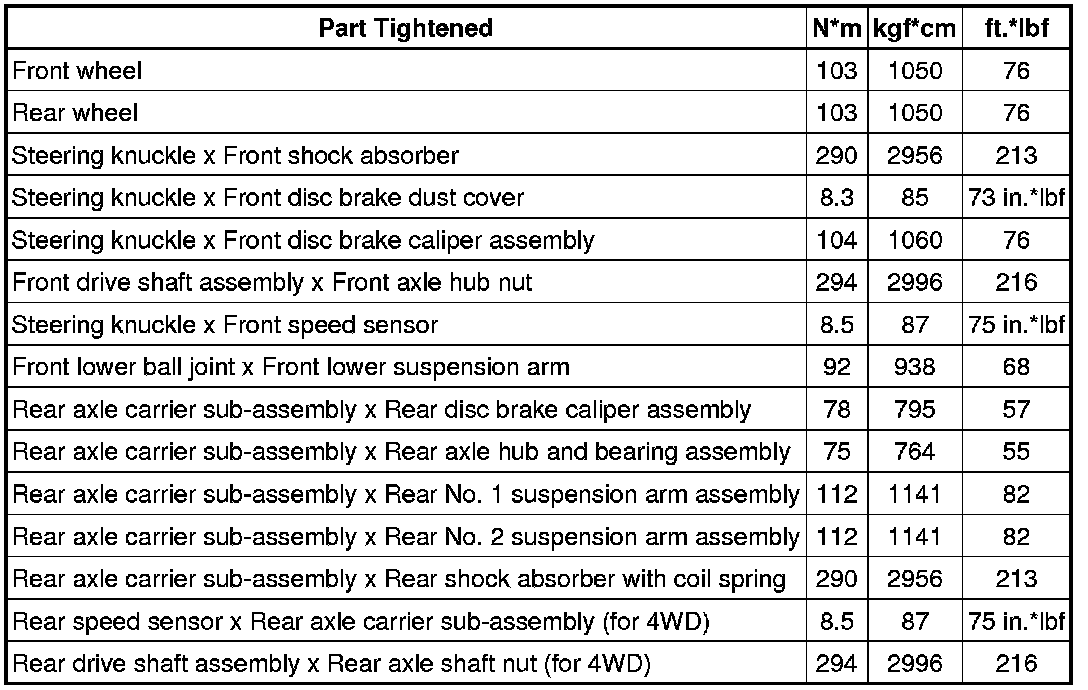 SERVICE SPECIFICATIONS: AXLE: TORQUE SPECIFICATIONS