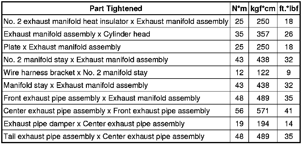 SERVICE SPECIFICATIONS: 1AR-FE EXHAUST: TORQUE SPECIFICATIONS