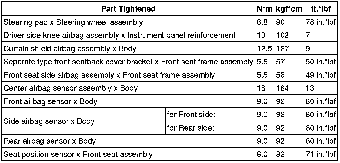 SERVICE SPECIFICATIONS: SUPPLEMENTAL RESTRAINT SYSTEM: TORQUE SPECIFICATIONS