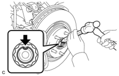 (c) Using a chisel and hammer, stake the front axle hub nut.