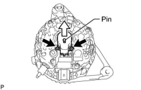 (a) While pushing the 2 brushes into the generator brush holder, insert a 1.0 mm (0.0394 in.) pin into the generator brush holder.