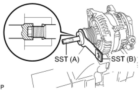 (c) Install SST (A) and (B) to the generator pulley as shown in the illustration.