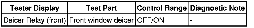 WINDSHIELD / WINDOWGLASS: WINDSHIELD DEICER SYSTEM: DATA LIST / ACTIVE TEST
