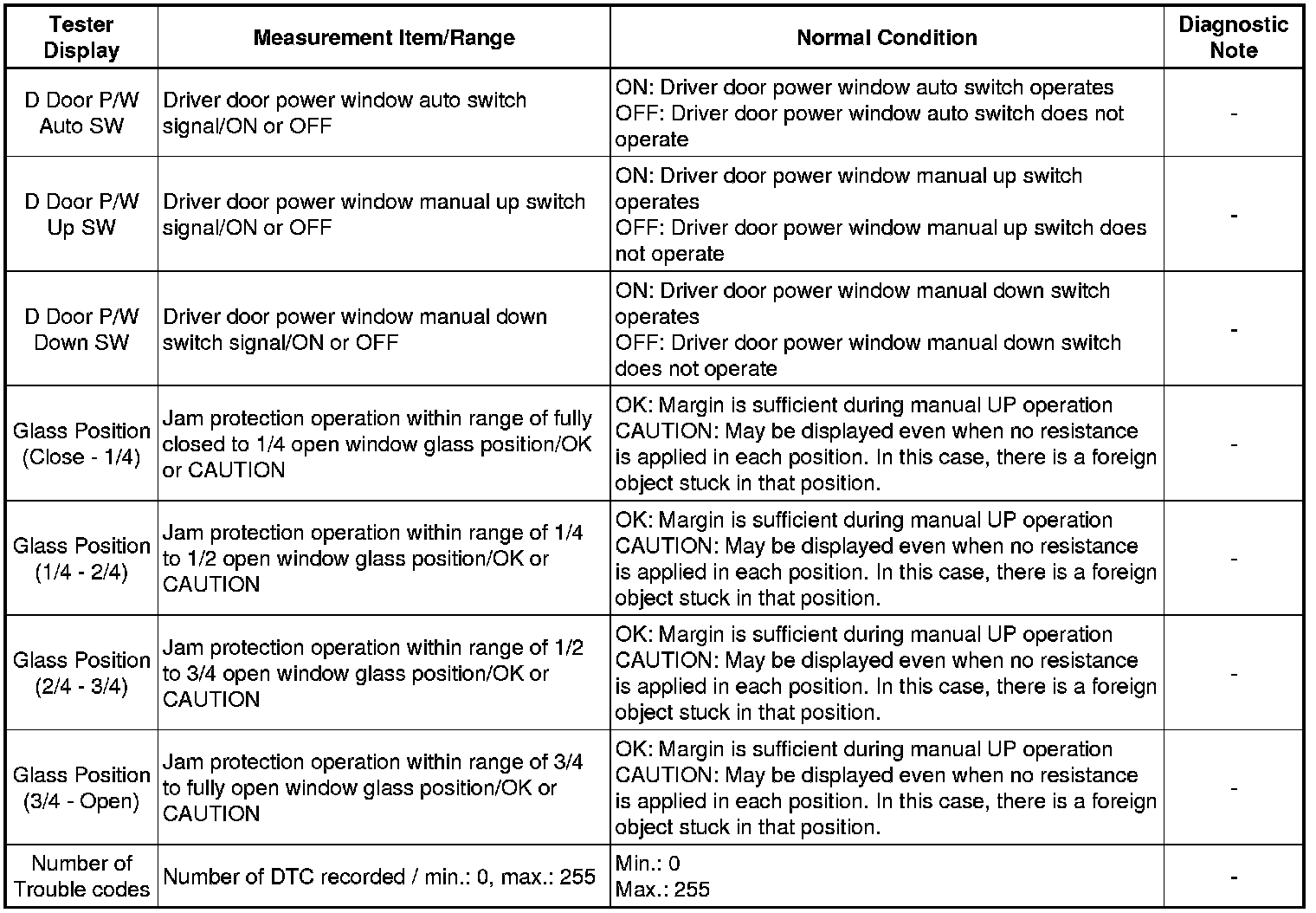 WINDSHIELD / WINDOWGLASS: POWER WINDOW CONTROL SYSTEM: DATA LIST / ACTIVE TEST