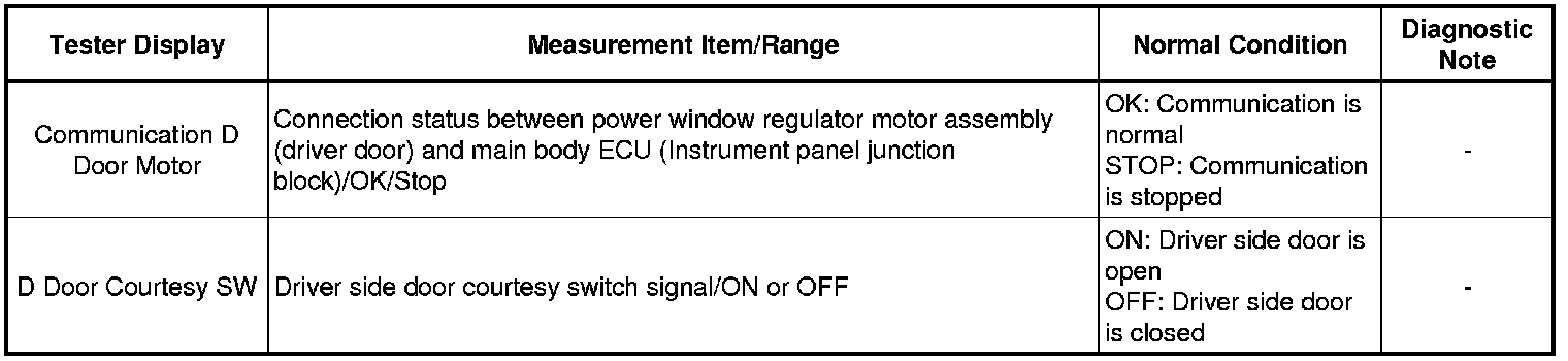 (1) Select: Body / D-Door Motor / DATA LIST.