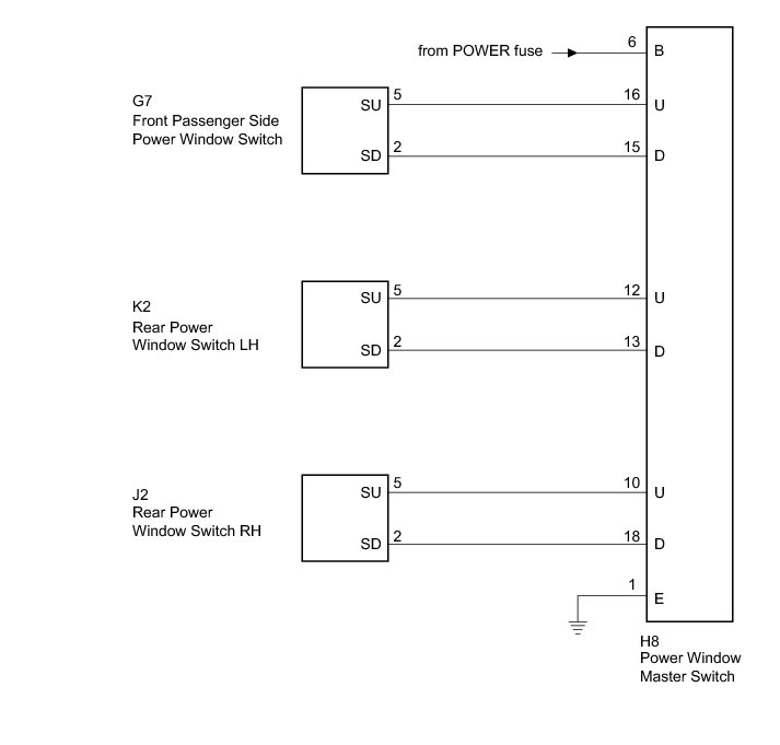NG -- HARNESS AND CONNECTOR (POWER WINDOW MASTER SWITCH - BATTERY AND BODY GROUND)