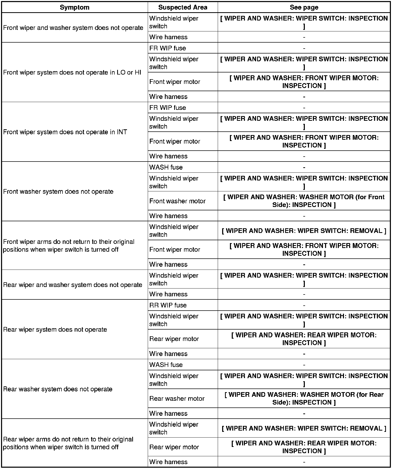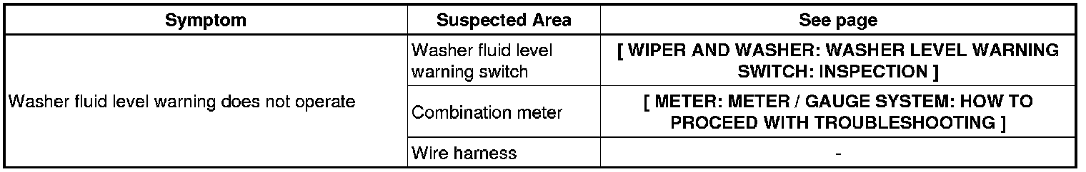WIPER AND WASHER: WIPER AND WASHER SYSTEM: PROBLEM SYMPTOMS TABLE