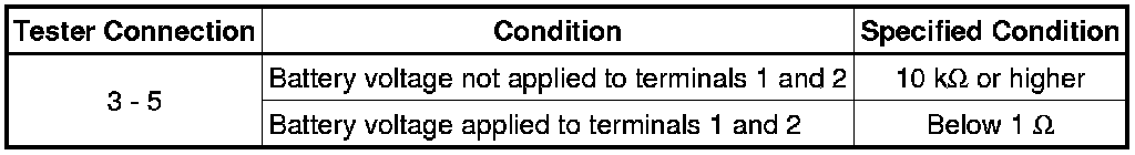 If the result is not as specified, replace the relay.