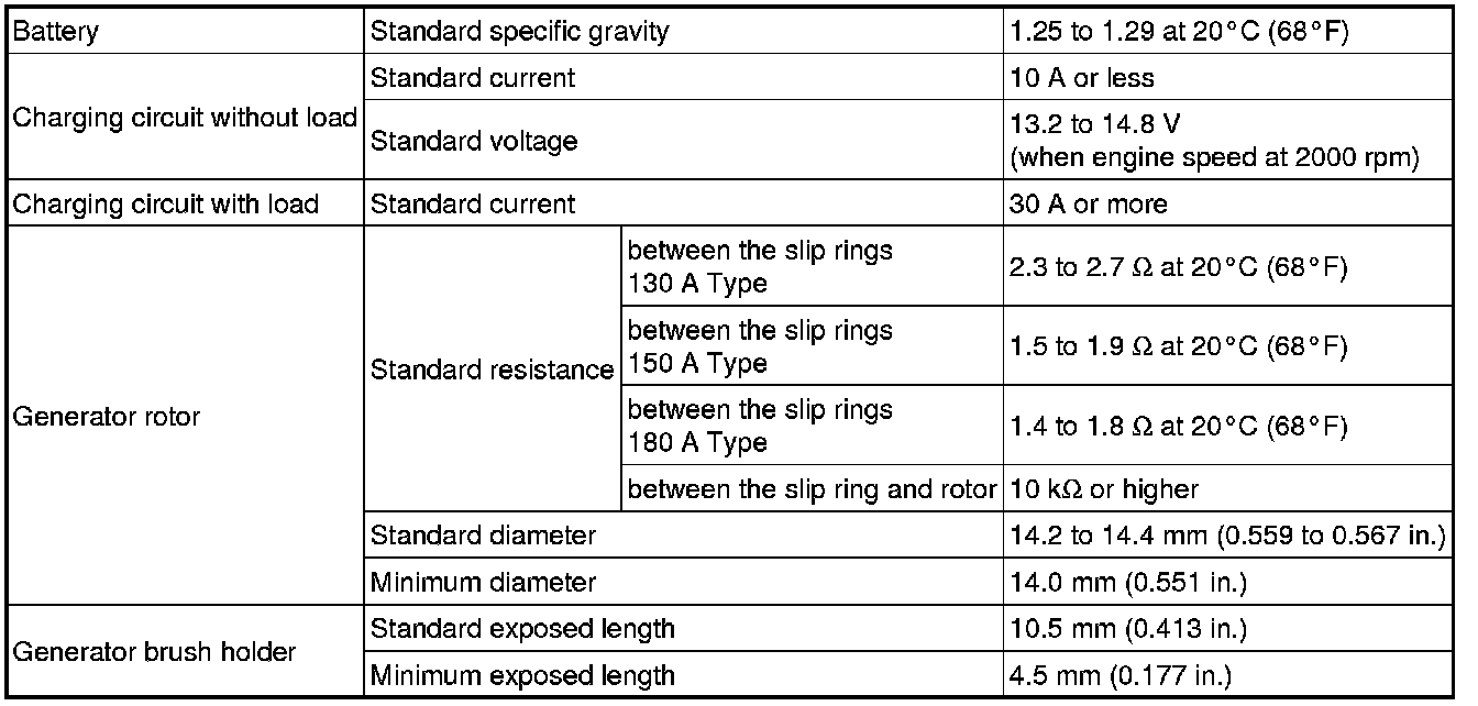 SPECIFICATIONS: 3UR-FBE BATTERY / CHARGING: SERVICE DATA