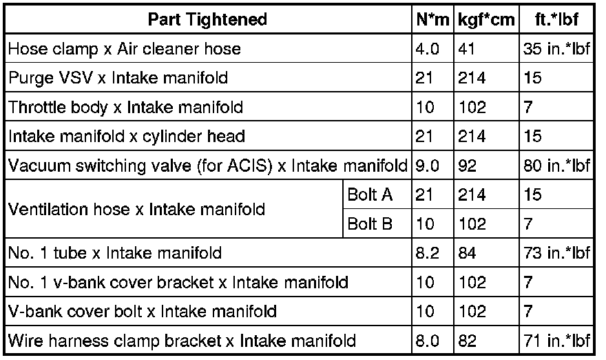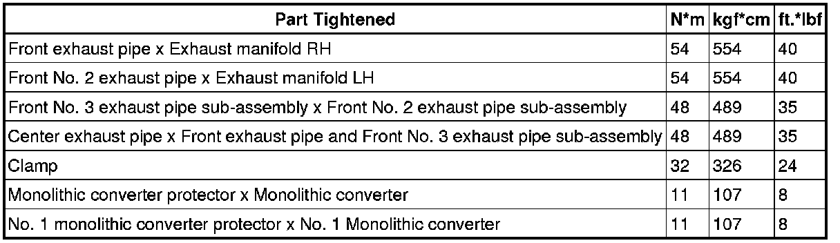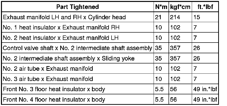SPECIFICATIONS: 3UR-FBE INTAKE / EXHAUST: TORQUE SPECIFICATIONS