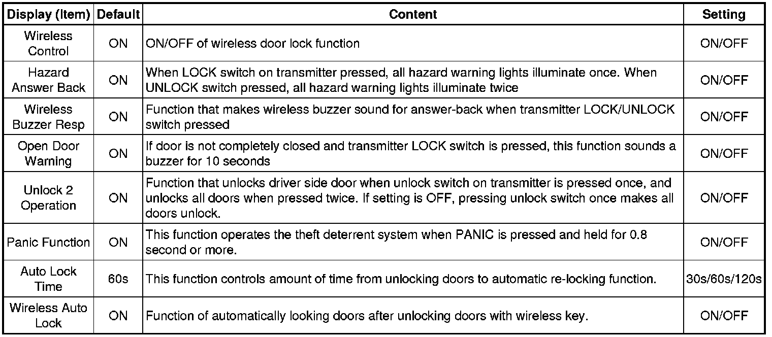 (e) Select the setting by referring to the table below.