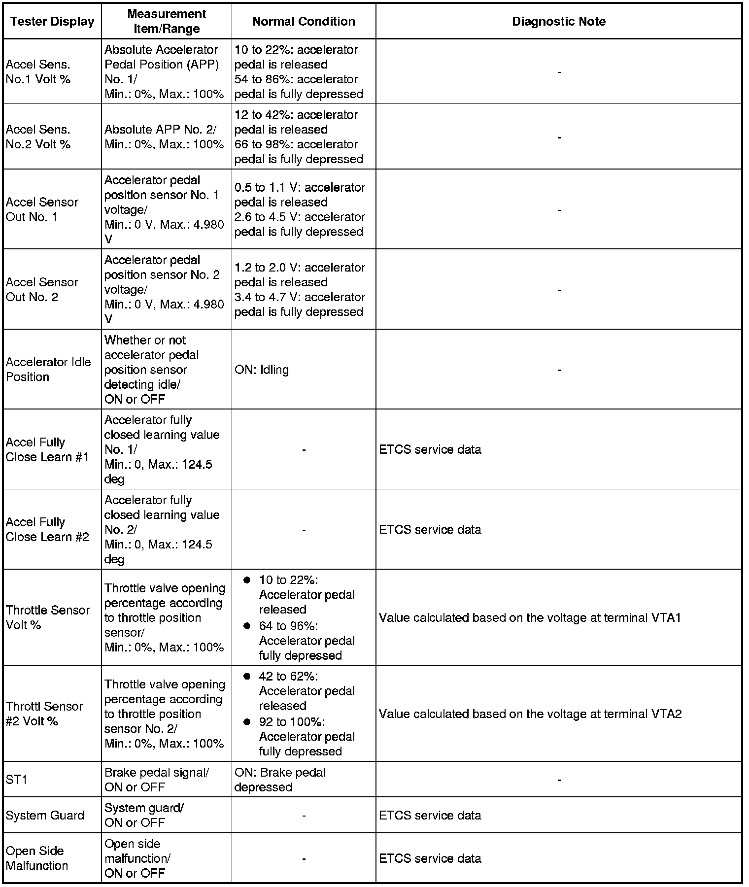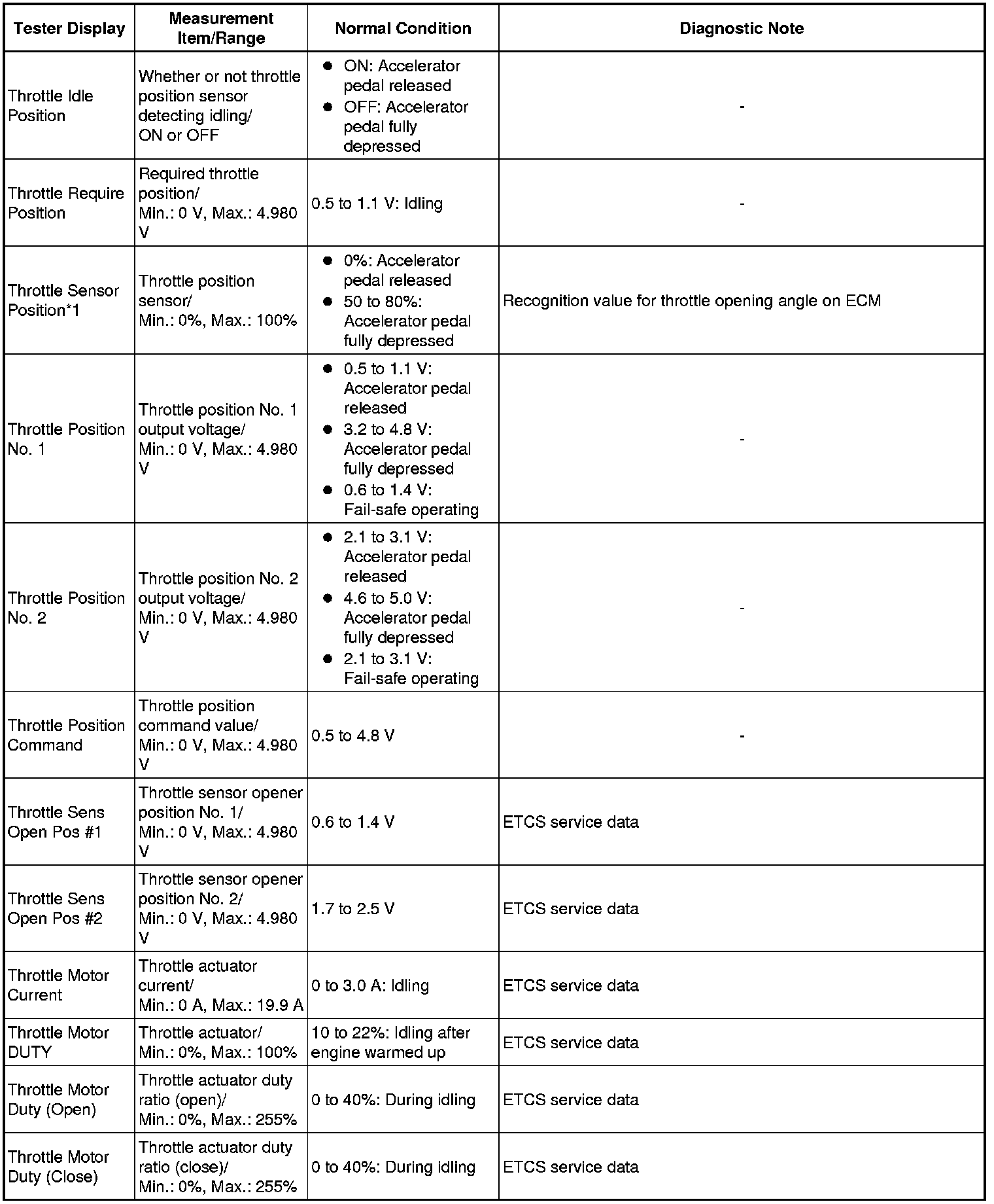 * *1: Excluding throttle valve opening percentage due to idle speed control (ISC).
