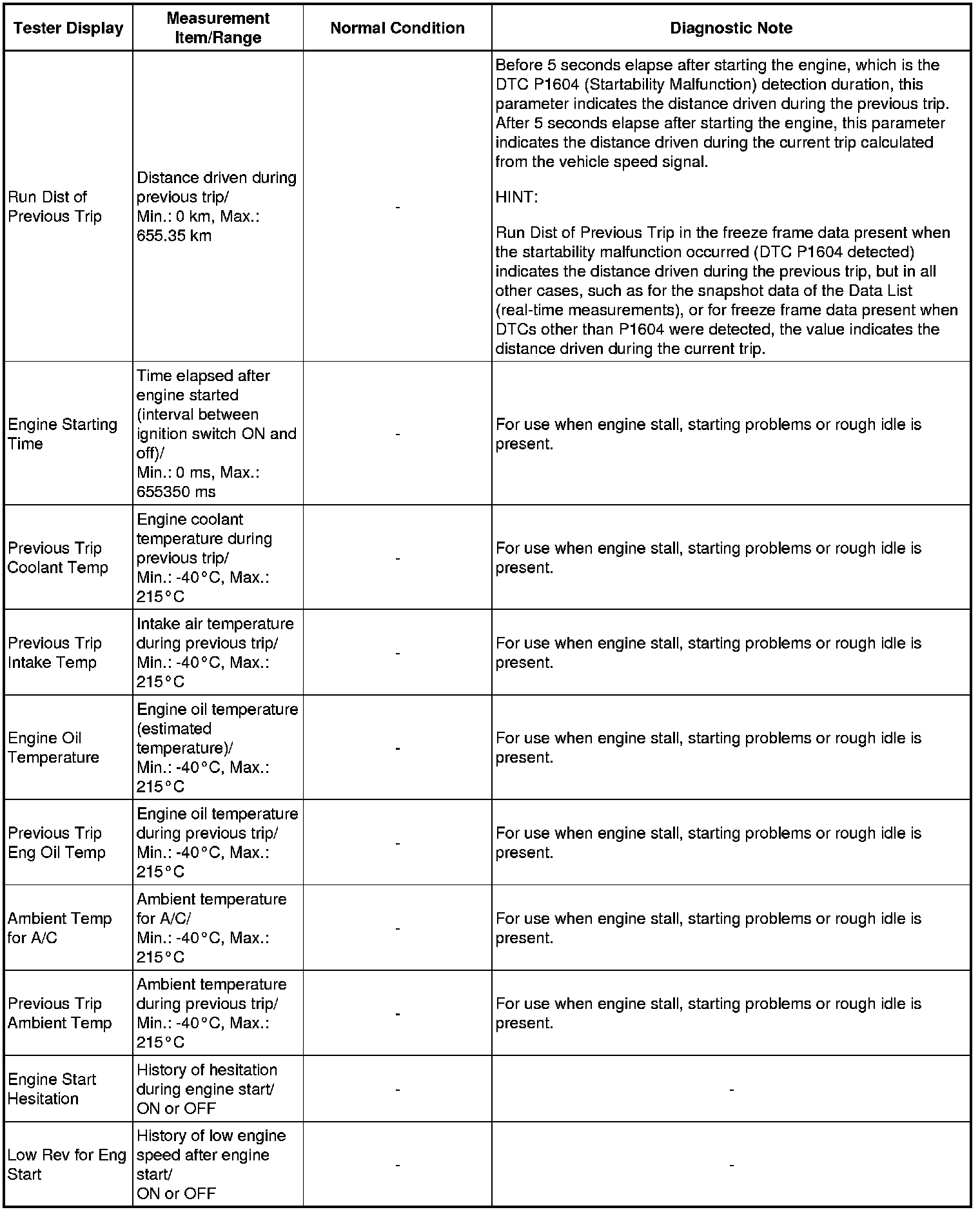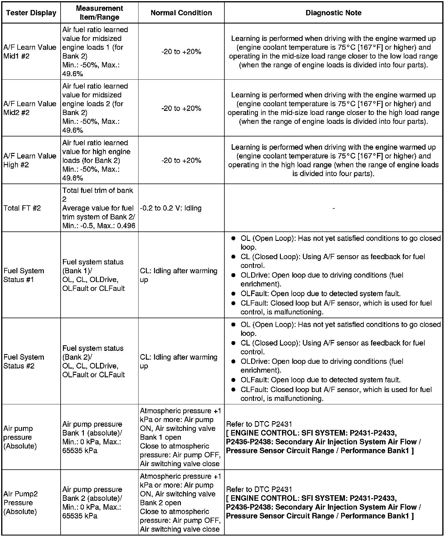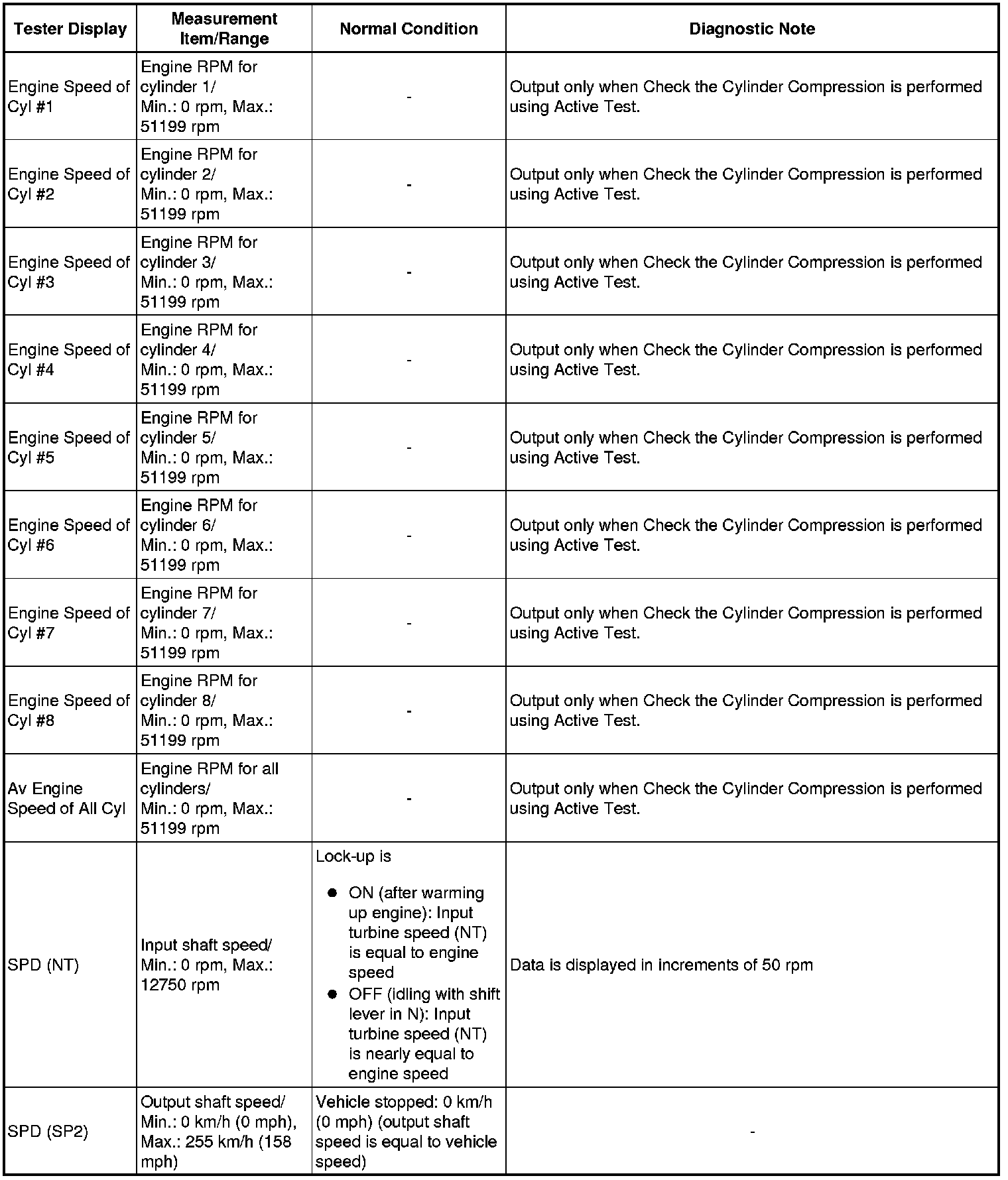 *2: When cranking the engine, each cylinder measures the engine speed.