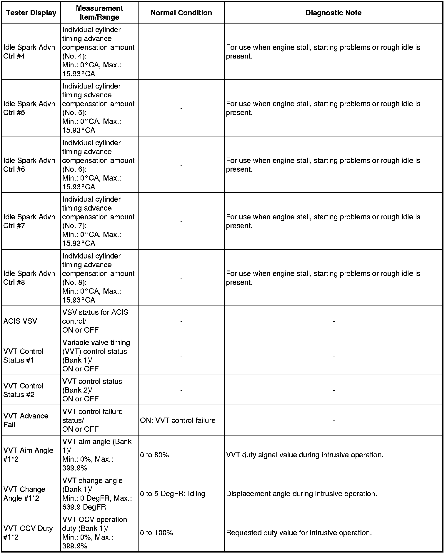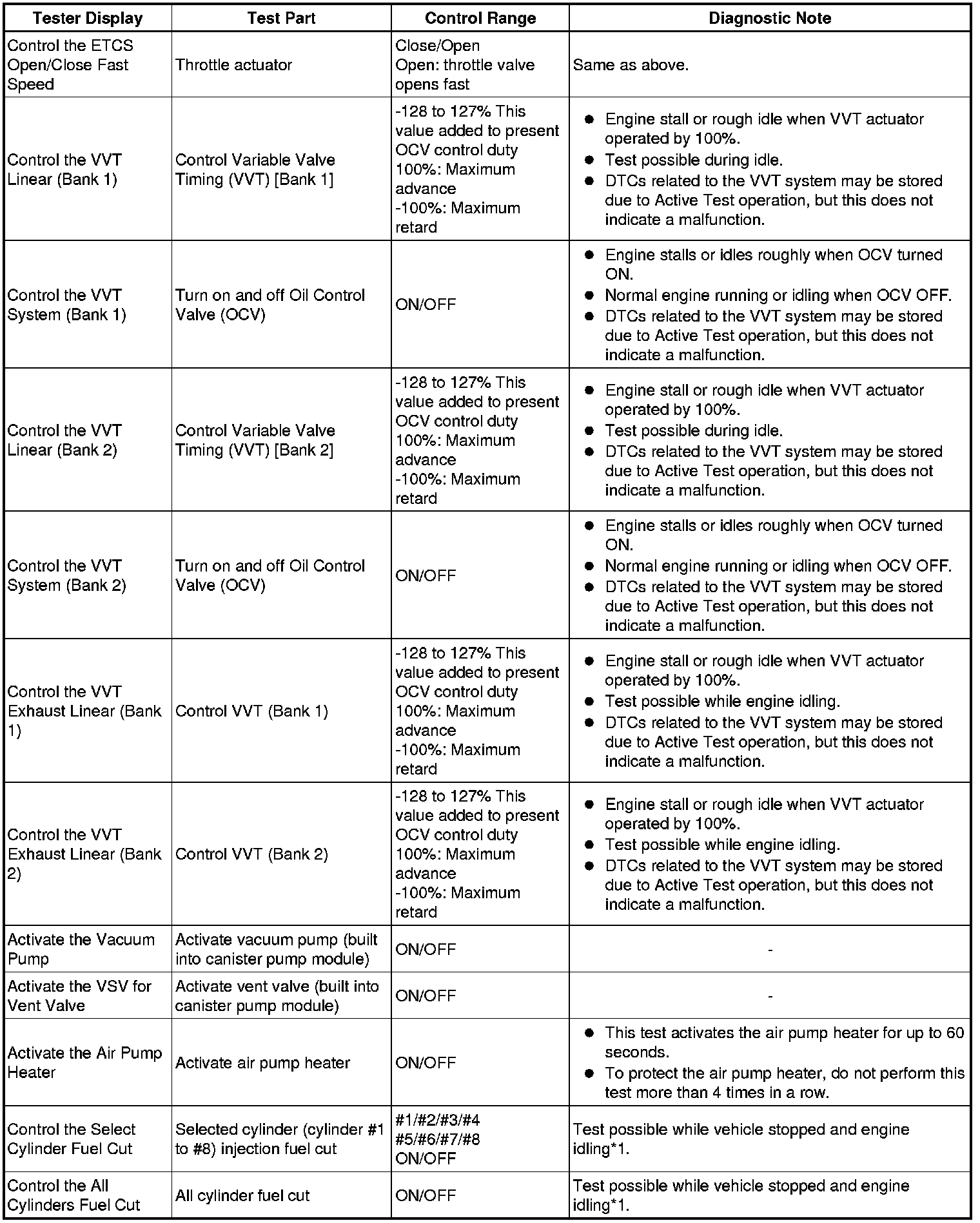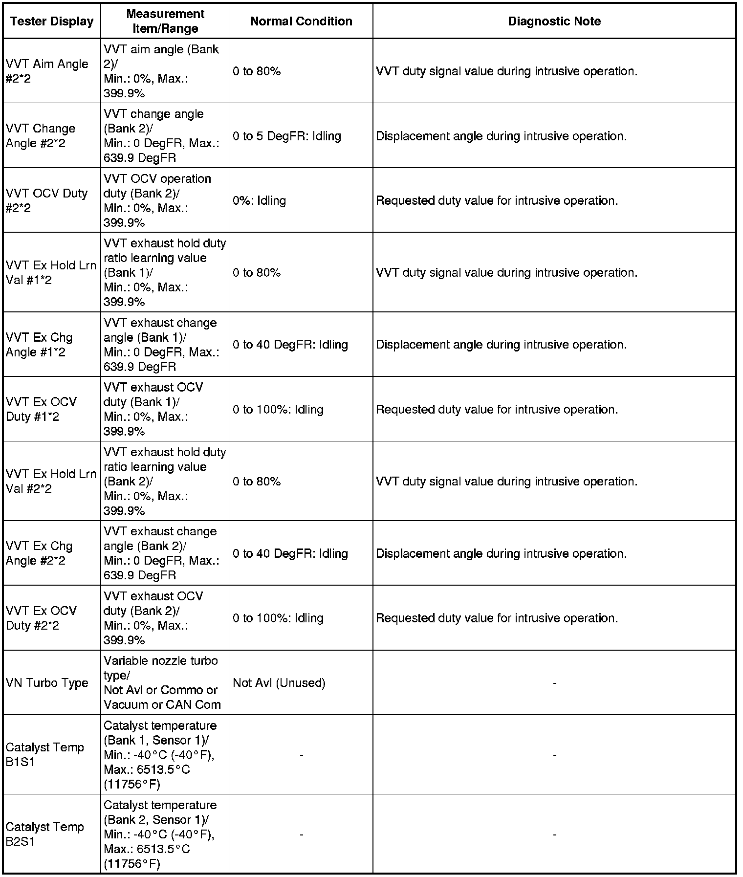 * *2: Data List values are only displayed when performing the following Active Tests: Control the VVT Linear (Bank 1), Control the VVT Linear (Bank 2), Control the VVT Exhaust Linear (Bank 1) and Control the VVT Exhaust Linear (Bank 2). For other Active Tests, the Data List value will be 0.