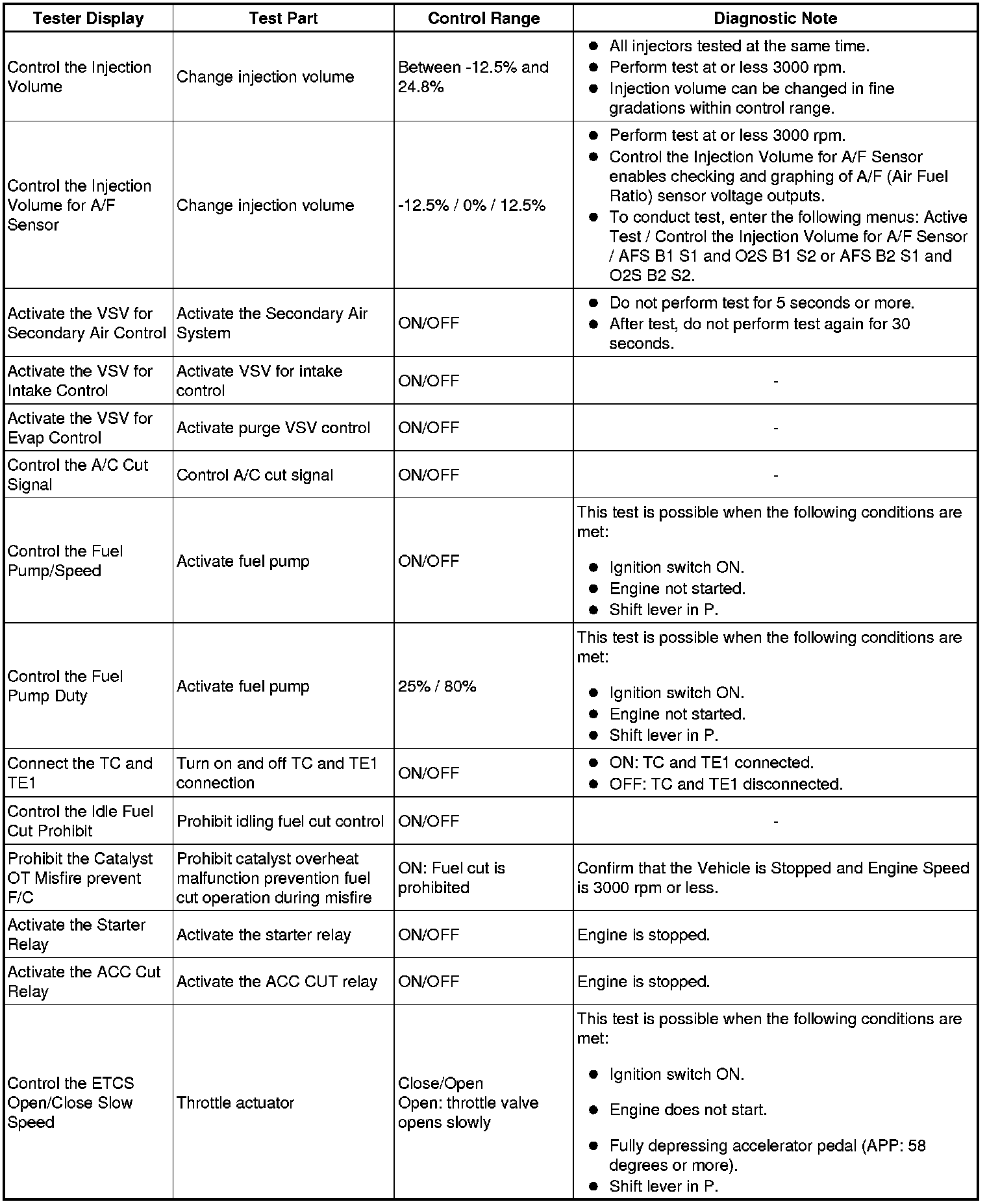 * If the display of the Data List's Prohibit the Catalyst OT Misfire prevent F/C item is Not Avl, perform this Active Test with the vehicle stopped and the engine idling.