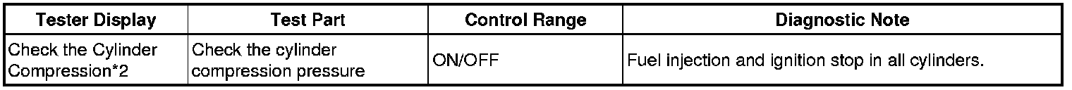 In this Active Test, the fuel and ignition of all cylinders is cut. The engine must then be cranked for approximately 10 seconds. At this time, the speed of each cylinder is measured. If the speed of one cylinder is more than the other cylinders, it can be determined that the compression pressure of that cylinder is lower than the other cylinders.