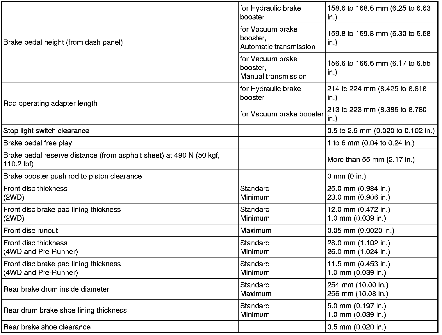 SERVICE SPECIFICATIONS: BRAKE: SERVICE DATA