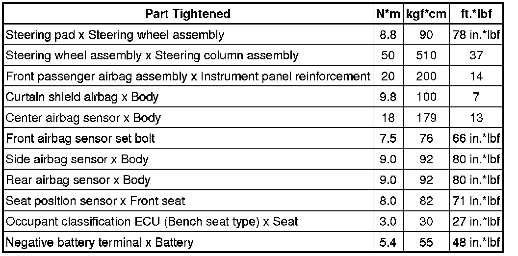 SERVICE SPECIFICATIONS: SUPPLEMENTAL RESTRAINT SYSTEM: TORQUE SPECIFICATIONS