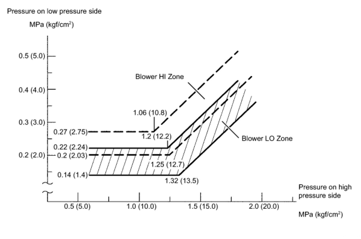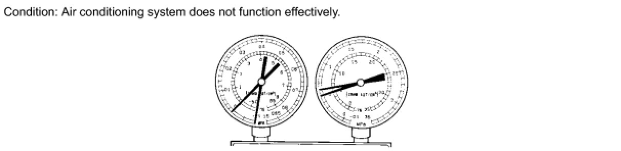 (a) This is a method to specify trouble areas by using a manifold gauge set. Read the manifold gauge pressure when the following conditions are established.