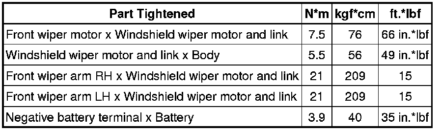 SERVICE SPECIFICATIONS: WIPER AND WASHER: TORQUE SPECIFICATIONS