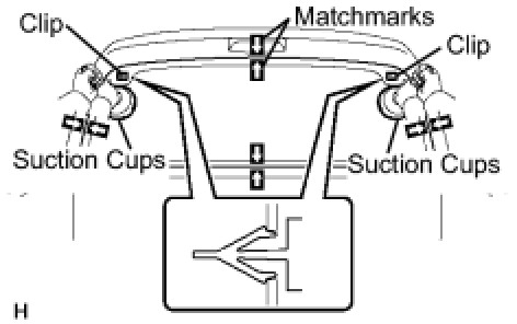 (1) Using suction cups, position the back window so that the matchmarks are aligned. Press it in gently along the rim.
