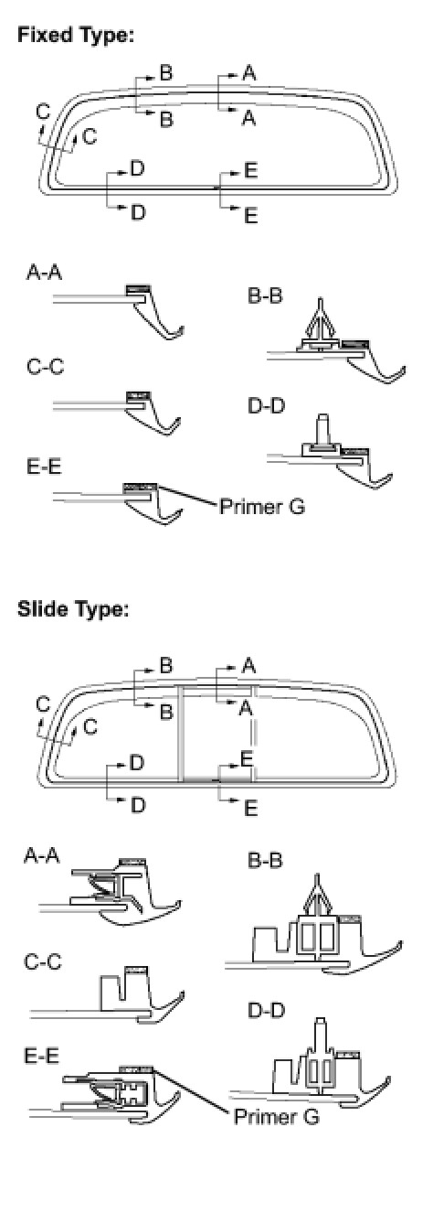 (c) Using a brush or sponge, apply Primer G to the edge of the back window and contact surface.